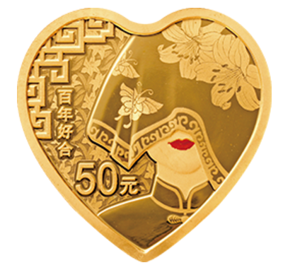 2020年的《百年好合》心形金银币