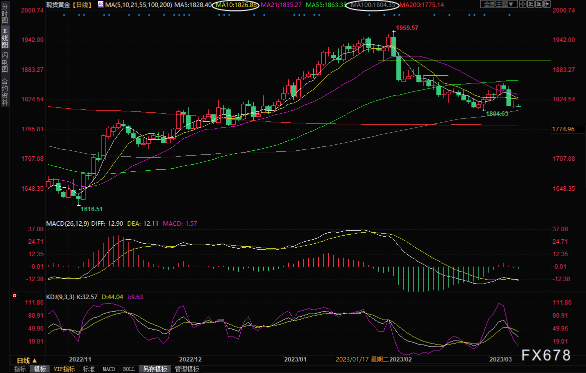 投资者普遍等待周五出炉的美国2月份非农就业报告,市场观望情绪较浓,预计短线金价偏向低位震荡调整,甚至存在一些温和反弹的机会。但利率期货显示,美联储3月份加息50个基点的概率已经接近80%,料将限制金价的反弹空间,并令金价面临进一步下探风险。短线留意1804-1826区域突破情况,分别是100日均线支撑和10日均线阻力。
