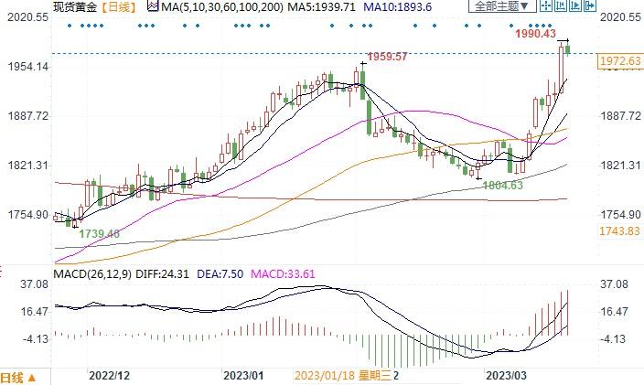 现货黄金日线图北京时间3月20日10:55,现货黄金报1972.63 美元/盎司