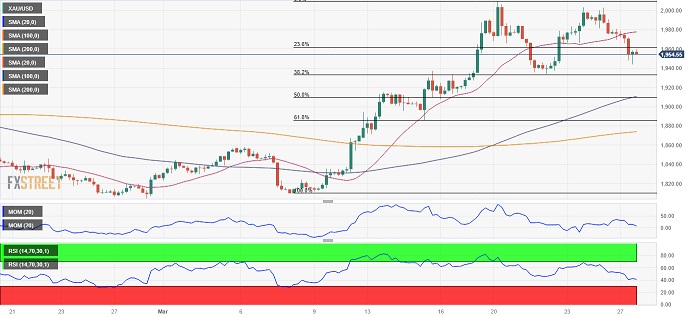 在短期内,根据4小时走势图,100周期SMA和200周期SMA保持其向上倾向,较当前金价水平低逾40美元,而20周期SMA则在1974.40美元/盎司左右缺乏方向性。技术指标已缩减跌幅,但仍在负值区间内,表明买入兴趣有限。