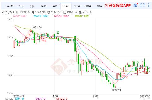 周一(4月3日)本交易日,国际黄金开于1970.19美元/盎司,最高上探至1970.19美元/盎司,最低触及1956.68美元/盎司,截至发稿暂报1960.29美元/盎司,跌幅0.45%。