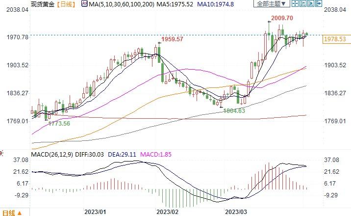 现货黄金日线图北京时间4月4日13:06,现货黄金报1978.53 美元/盎司