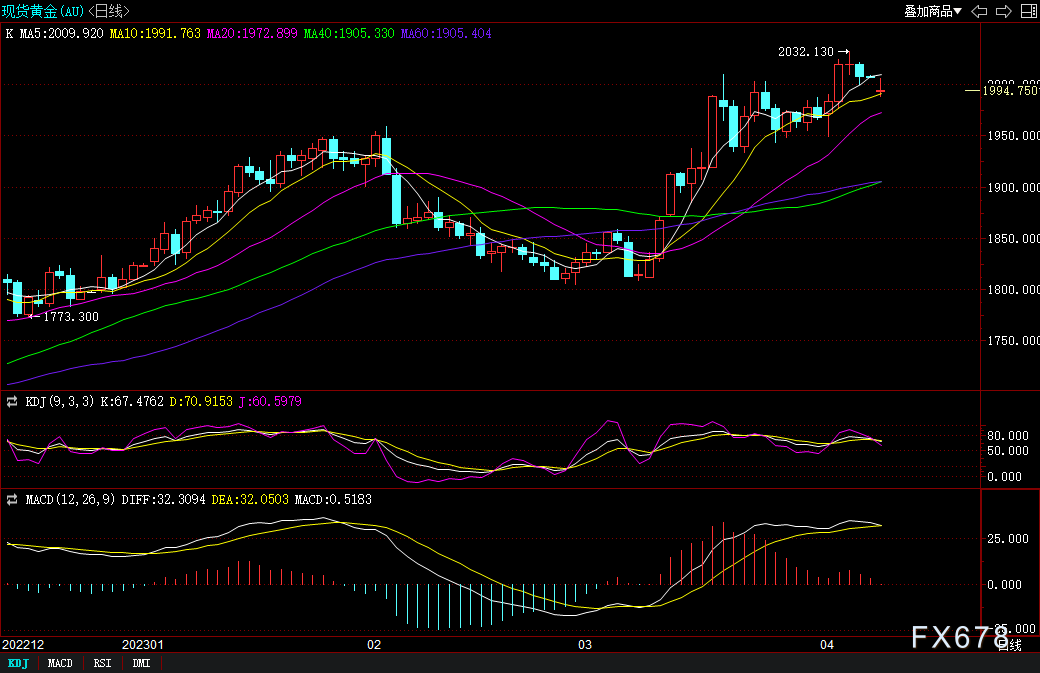 整体来看,非农数据强化了美联储5月份加息的预期,短线美元和美债收益率存在进一步反弹机会,上周金价涨幅较大,短线金价仍面临进一步回调风险,关注10日均线1987.18和1980关口支撑。但无论是对欧美银行业动荡的担忧,还是美联储等全球多数央行已经进入加息周期尾期的预期,都将在中长线吸引逢低买盘支撑金价,这将限制金价的回调空间,并有望给金价提供进一步上涨机会。