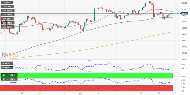 24K99讯 周三(4月19日)亚市盘中,美元指数承压于101.70附近。现货黄金目前持稳,金价位于2005美元/盎司附近;昨日金价大幅上升逾10美元,并一度突破2010美元/盎司关口。FXStreet首席分析师Valeria Bednarik最新撰文,对黄金技术前景进行分析。