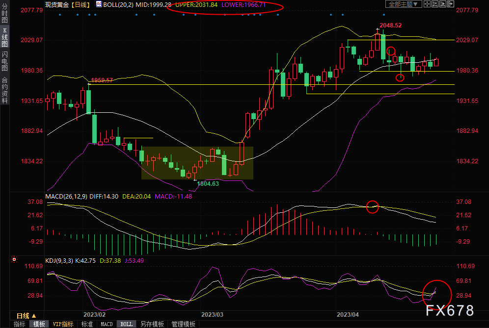 由于MACD死叉信号仍在,隔夜金价冲高回落,仍需提防金价震荡下行风险,初步支撑在日内低点1989.93附近,然后是1980关口,4月19日低点支撑在1969.14附近,若下破该支撑,则增加后市看空信号,进一步支撑参考1960关口和3月27日低点1943.93附近位置。