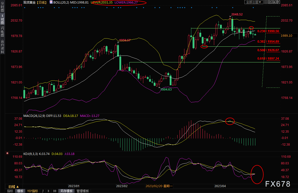 由于KDJ有金叉趋势,金价目前仍守在1980关口上方,若金价意外回升至2000关口上方,则削弱短线看空信号;进一步阻力在周三高点2009.23附近。然后是2020整数关口附近阻力。
